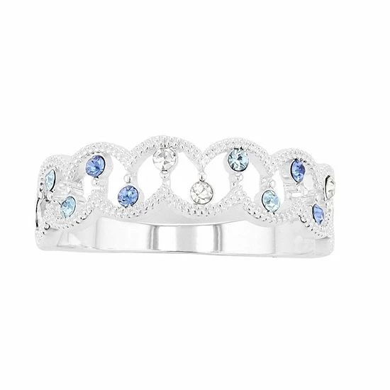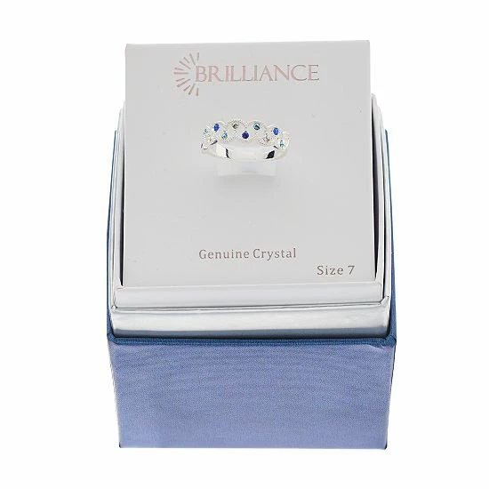 Put an elegant final touch on your look with this Brilliance blue and clear crystal open textured ring.