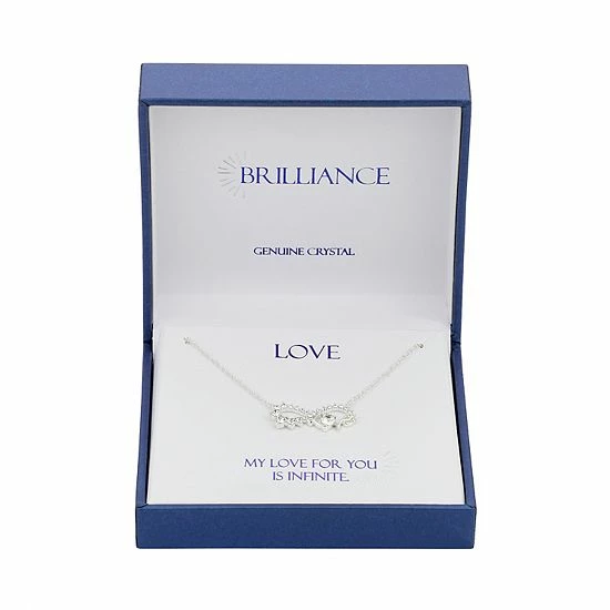 Keep your true love close with this Brilliance Brass “Love” Infinity Pendant Necklace.
