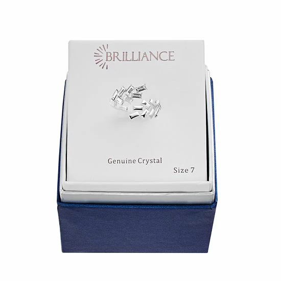Decorated with crystal baguettes in a unique vine motif, this Brilliance bypass ring is a stylish accent to your wardrobe.