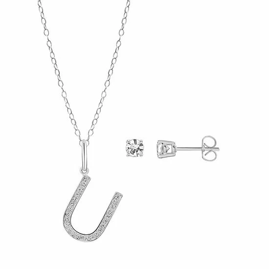 Spread a little holiday cheer with this Brilliance necklace and earring set, which features a sparkly crystal initial pendant and stud earrings in a festive ornament-shaped box.