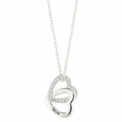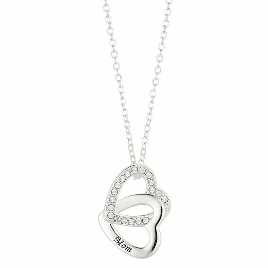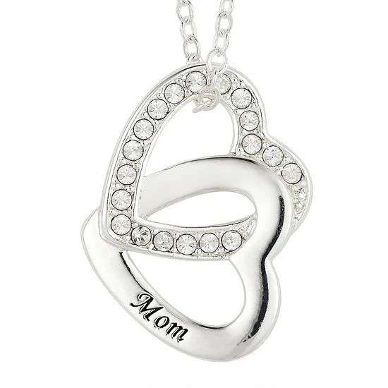 Made with sparkling crystals, this gorgeous linked double heart “mom” necklace is the perfect way to show your mother how much she means to you.