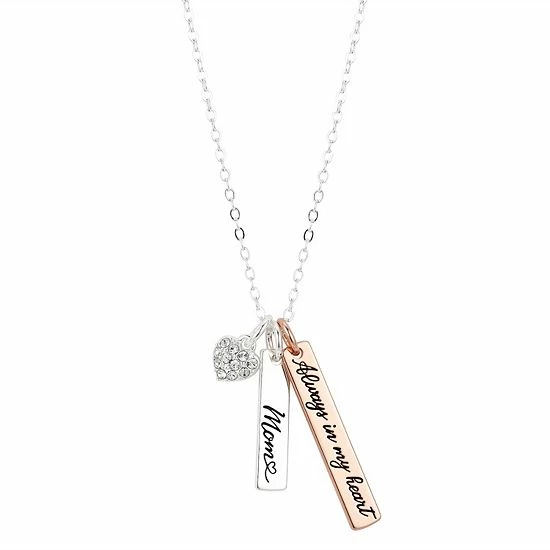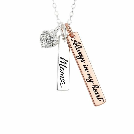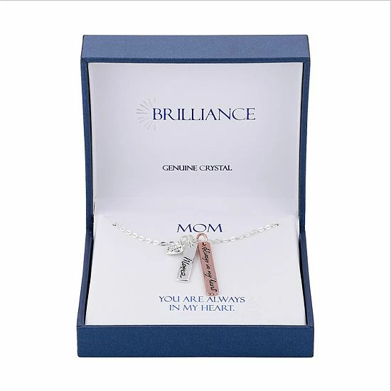 Featuring “Mom” and “Always In My Heart” inscriptions, this Brilliance bar charm necklace is sure to become a cherished favorite.