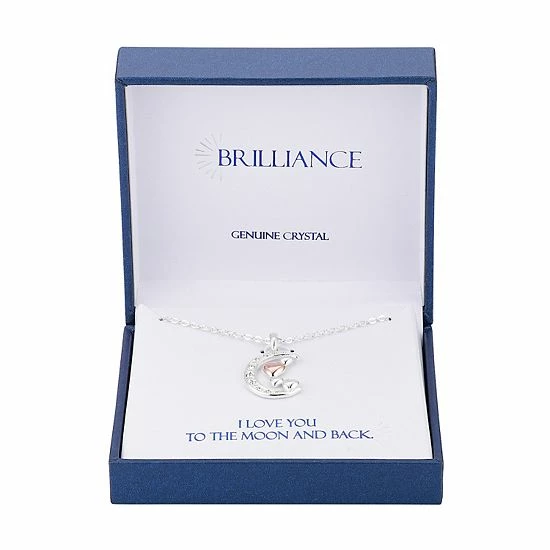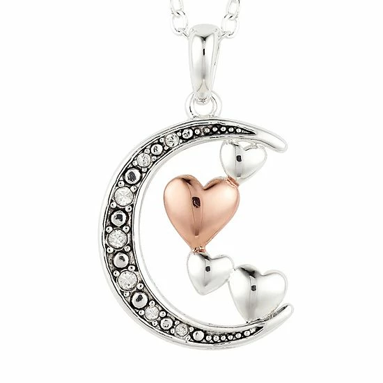 Made with sparkling crystals, this gorgeous two-tone moon and hearts necklace is a must-add to your fine jewelry collection.