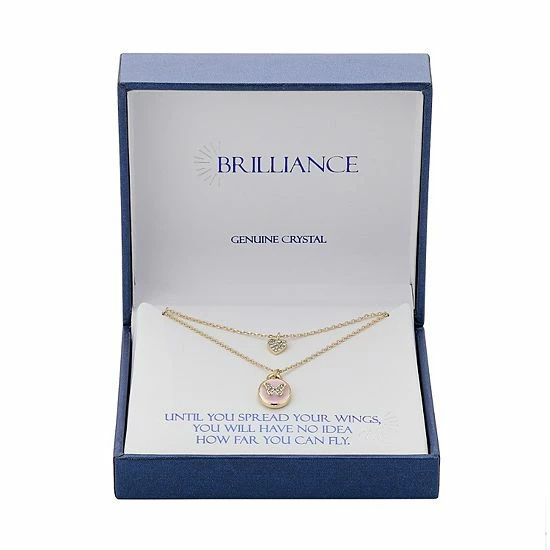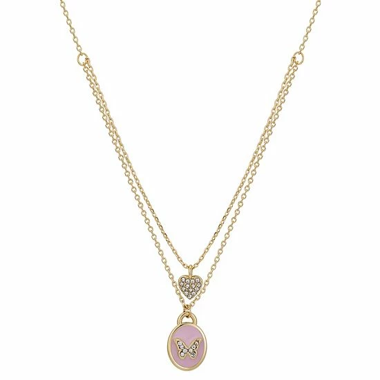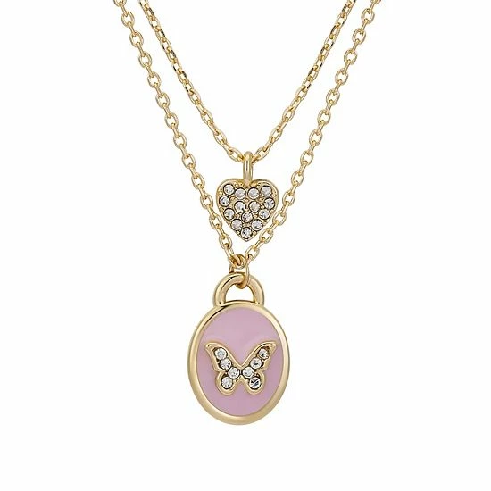You’ll love the chic style of this Brilliance double strand necklace, featuring butterfly and heart charms.