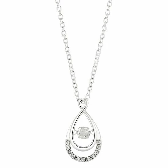 You’re sure to appreciate the eye-catching beauty of this Brilliance teardrop necklace. It features a stunning crystal center stone that swivels in place, giving it breathtaking sparkle from every angle.