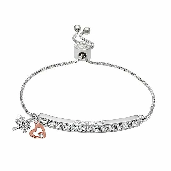 Treasure your family with this sparkling crystal bar bolo bracelet with family and heart charms.