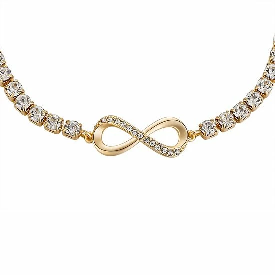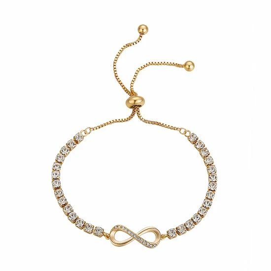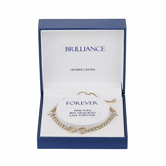 Decorated with shimmering crystals, this Brilliance adjustable infinity bracelet offers limitless style.