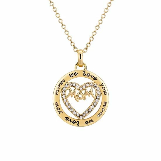 Give your mother the perfect gift with this Brilliance crystal “Mom” open heart circle pendant necklace.