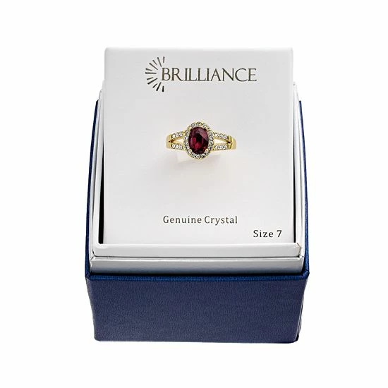 Add a stylish touch to any of your favorite ensembles when you wear this Brilliance purple crystal halo ring.