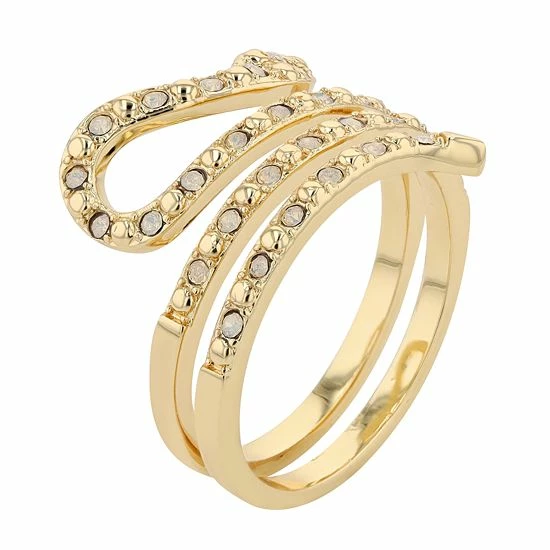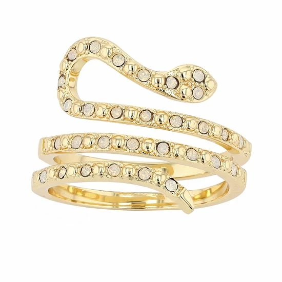 Add a captivating touch to your favorite attire with this distinctively stylish Brilliance simulated white opal crystal snake ring.