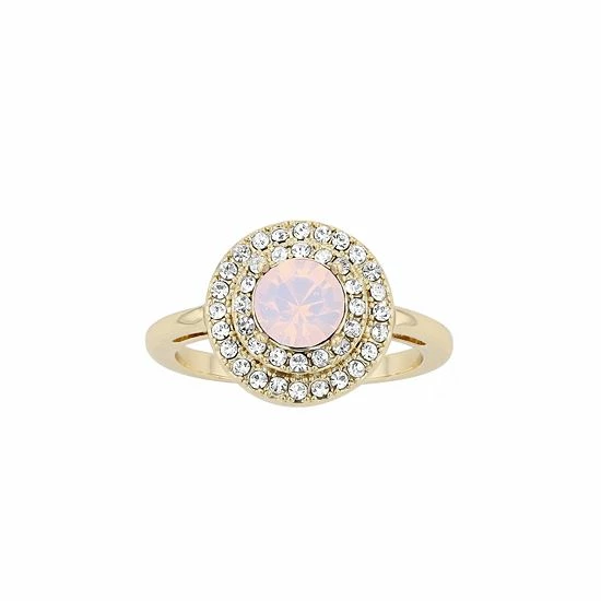 Shimmering with simulated rosewater opal crystals, this Brilliance double halo ring provides a stylish complement to your attire.