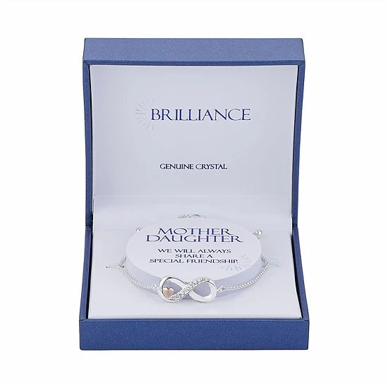 Adorned with a sweet inscription set in a crystal-studded infinity symbol, this two-tone adjustable bracelet is a charming way to show your mom how much she means to you.