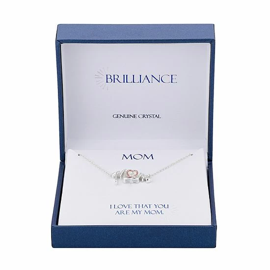 This Brilliance two-tone “Mom” necklace makes a perfect gift, featuring a crystal that shimmers beautifully from every angle.