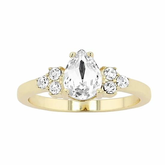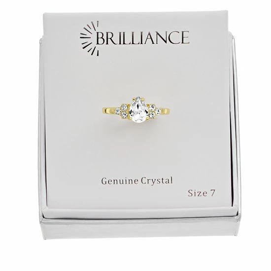 Brilliance Vintage Rose & White Crystal Teardrop Ring Gold Tone Clear